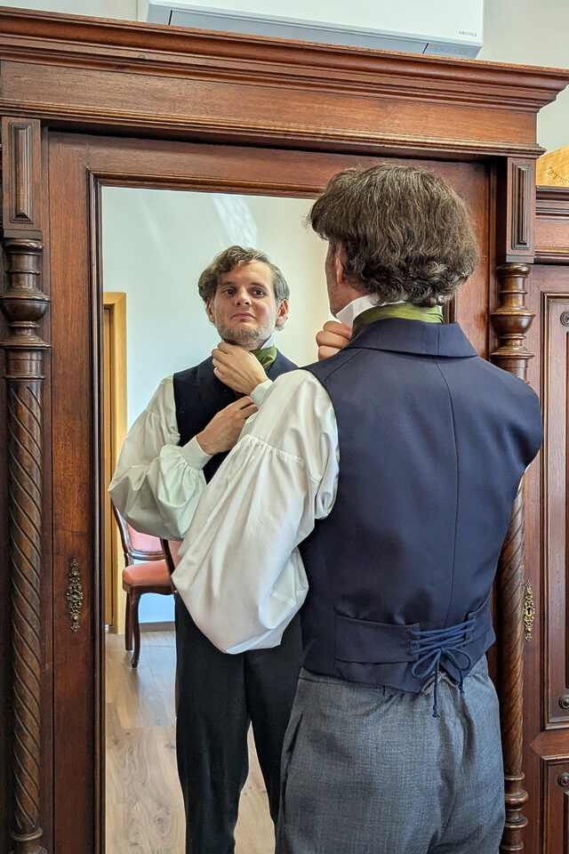 Ob ihr von einem Gewand im mittelalterlichen Stil träumt, einen Frack im Biedermeier-Look möchtet oder ein Outfit sucht, das moderne Linien mit historischen Anklängen verbindet: Wir setzen es so um, dass es nicht nach Kostüm aussieht, sondern nach euch.