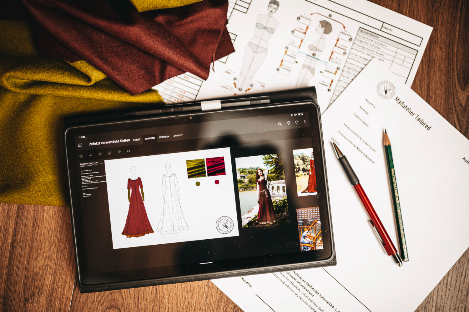 Wir begleiten euch Schritt für Schritt durch das Abenteuer Maßanfertigung: von Entwurfszeichnungen über ein 3D-Modell eurer fertigen Gewandung bis zum letzten, sorgfältig gesetzten Stich. Ihr seid Chef und Teil des Prozesses.
